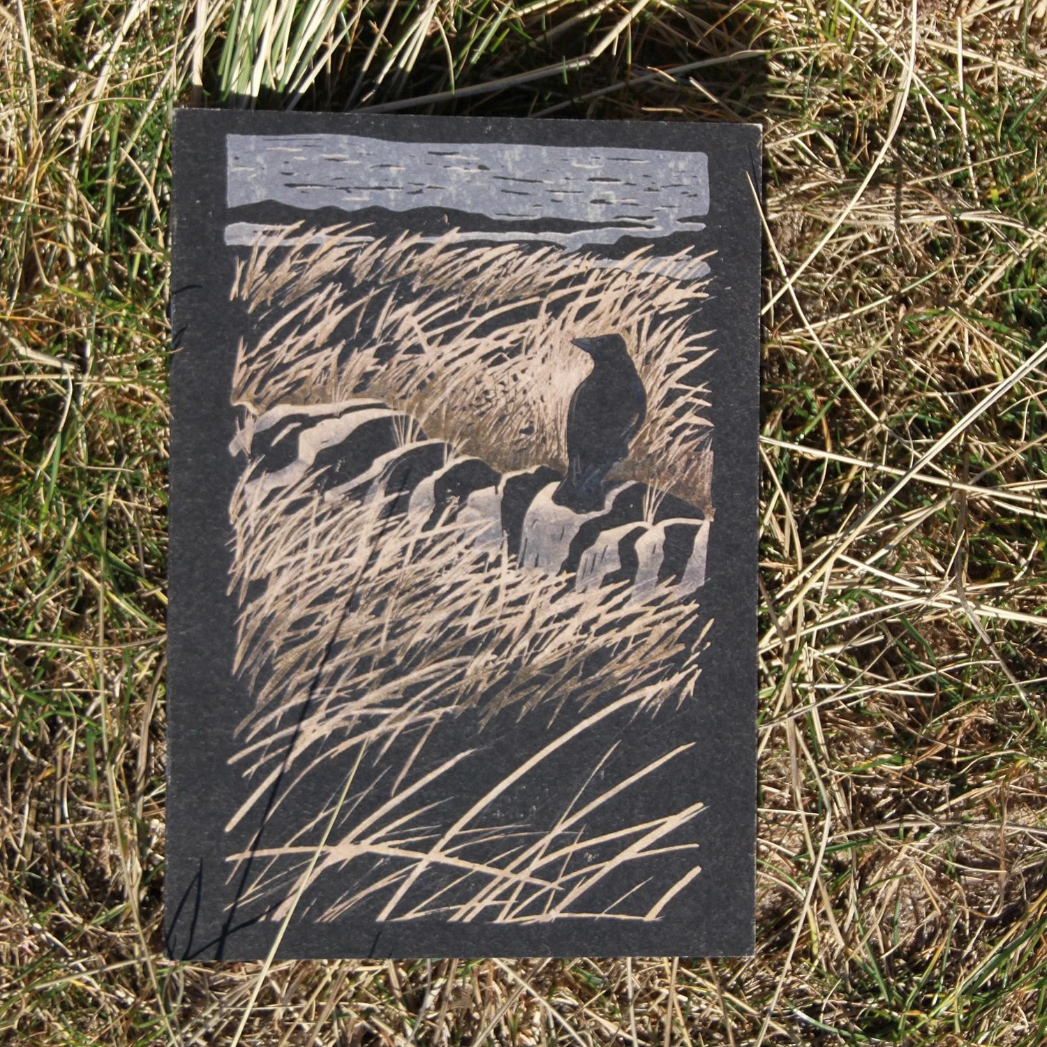 Golf Course Crow - designed for Rock & Bird from an original relief print by Julia ZJ